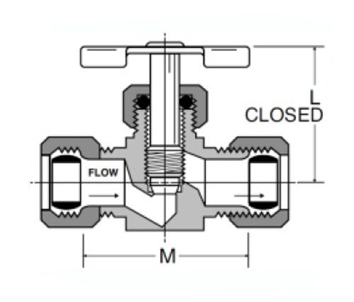 วาล์วเข็มสองเส้นตรงช่วยให้ก๊าซไหลในทิศทางเดียวเท่านั้นและเหมาะสำหรับการควบคุมการไหลของก๊าซไปยังเตาเผา การออกแบบก้านทั้งสี่ช่วยให้เพลาอยู่ในตำแหน่งขนานและสี่เหลี่ยมจัตุรัสไปตรงกลางของ Venturi เป็นสองเท่าของวาล์วเข็มทันทีช่วยให้การไหลของของเหลวในทิศทางใดทิศทางหนึ่งโดยการหมุนสปูลไปยังตำแหน่งที่ต้องการเท่านั้น บางตัวมีอุปกรณ์ล็อคเพื่อป้องกันการหมุนโดยไม่ตั้งใจ